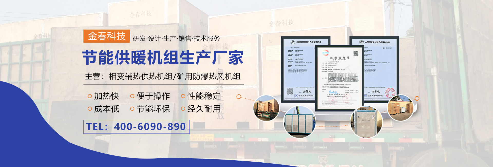 • 多年專(zhuān)注生產(chǎn)相變輔熱供熱機(jī)組、礦用防爆熱風(fēng)機(jī)組,可代替燃煤、燃油、燃?xì)忮仩t